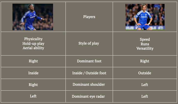 If you want Torres to mirror Drogba's style, it's bound to falter. Their contrasting body preferences and physical attributes make this approach incompatible.